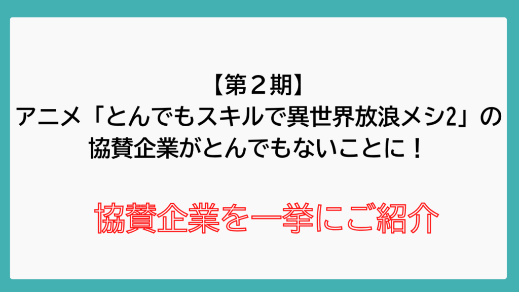 【第2期】アニメ「とんでもスキルで異世界放浪メシ2」の協賛企業がとんでもないことに!